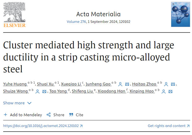 近日,我院毛新平院士团队的两项科研成果,薄带铸轧微合金高强钢中团簇诱导的强塑机制、高强塑低锰含量中锰钢非均质结构调控及强塑化机制研究,在高水平期刊《Acta Materialia》上同时发表!