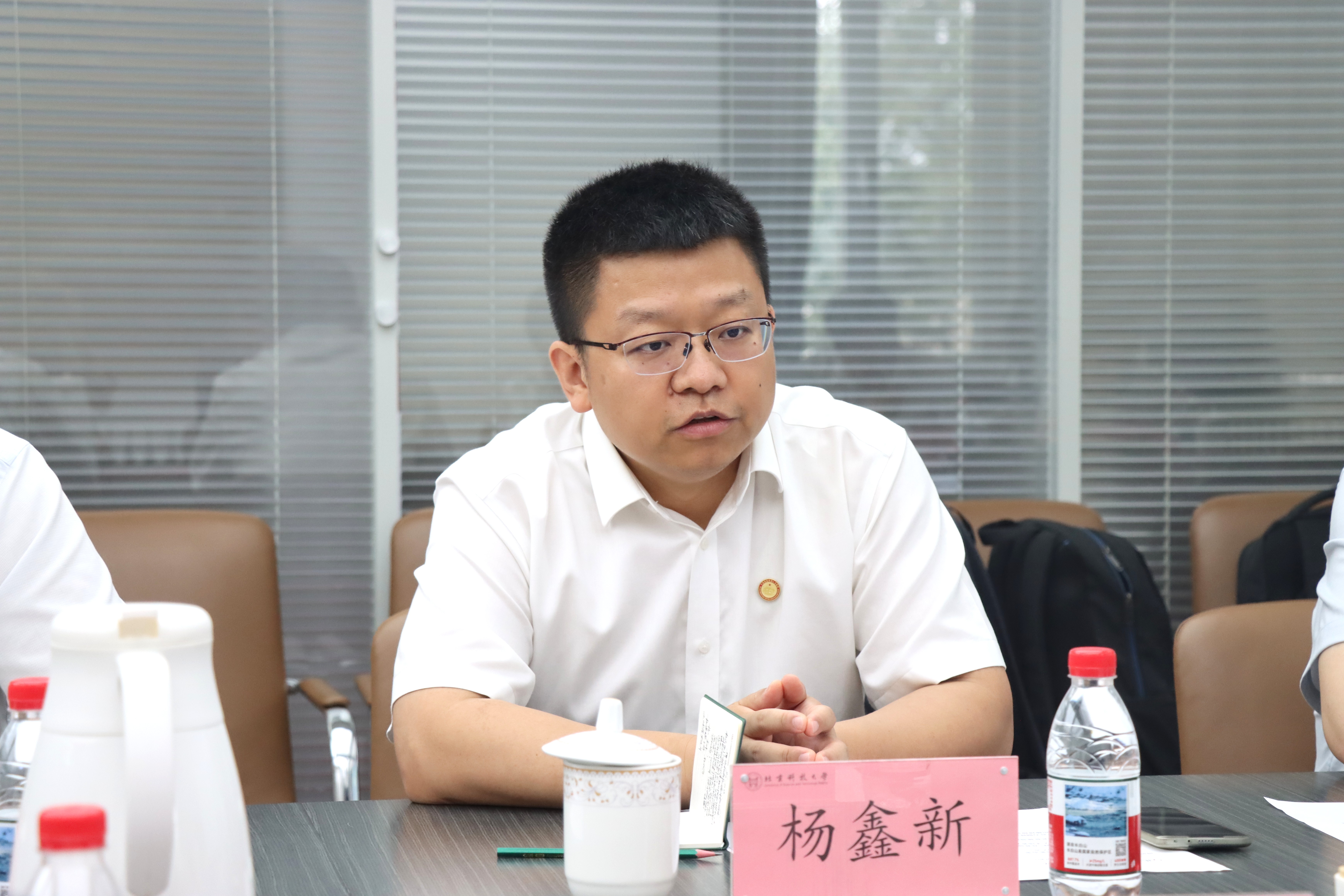 7月9日,大连检验检测认证集团有限公司党委委员、科技委主任杨鑫新一行来访碳中和研究院,北京科技大学科技成果转化研究院副院长、北京科大资产经营有限公司副总经理杨志国,科学技术研究院副院长王哲,招生就业处副处长、卓越工程师学院副院长刘晓杰,碳中和研究院副院长汪水泽、侯新梅、王基镔出席交流座谈会,冶金与生态工程学院、能源与环境工程学院部分教师代表参会。