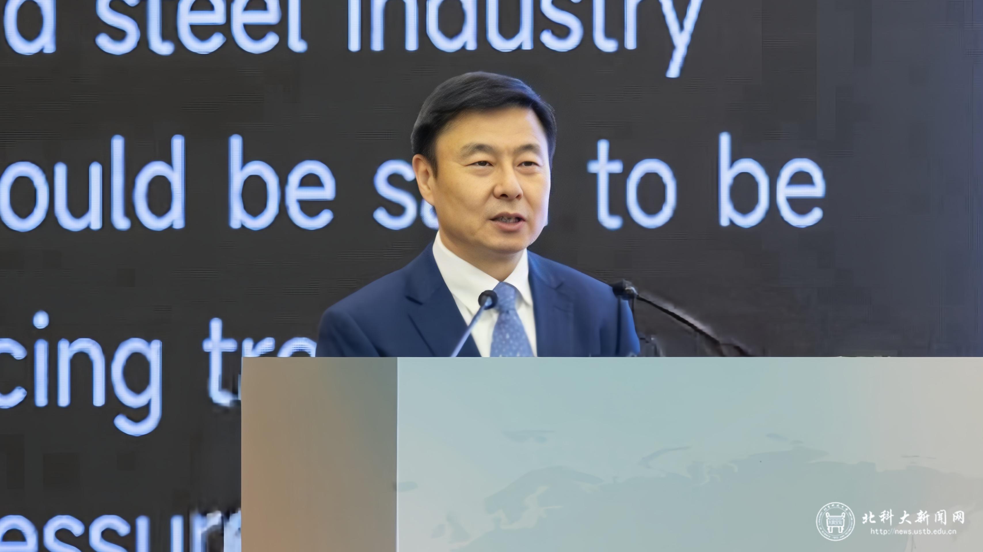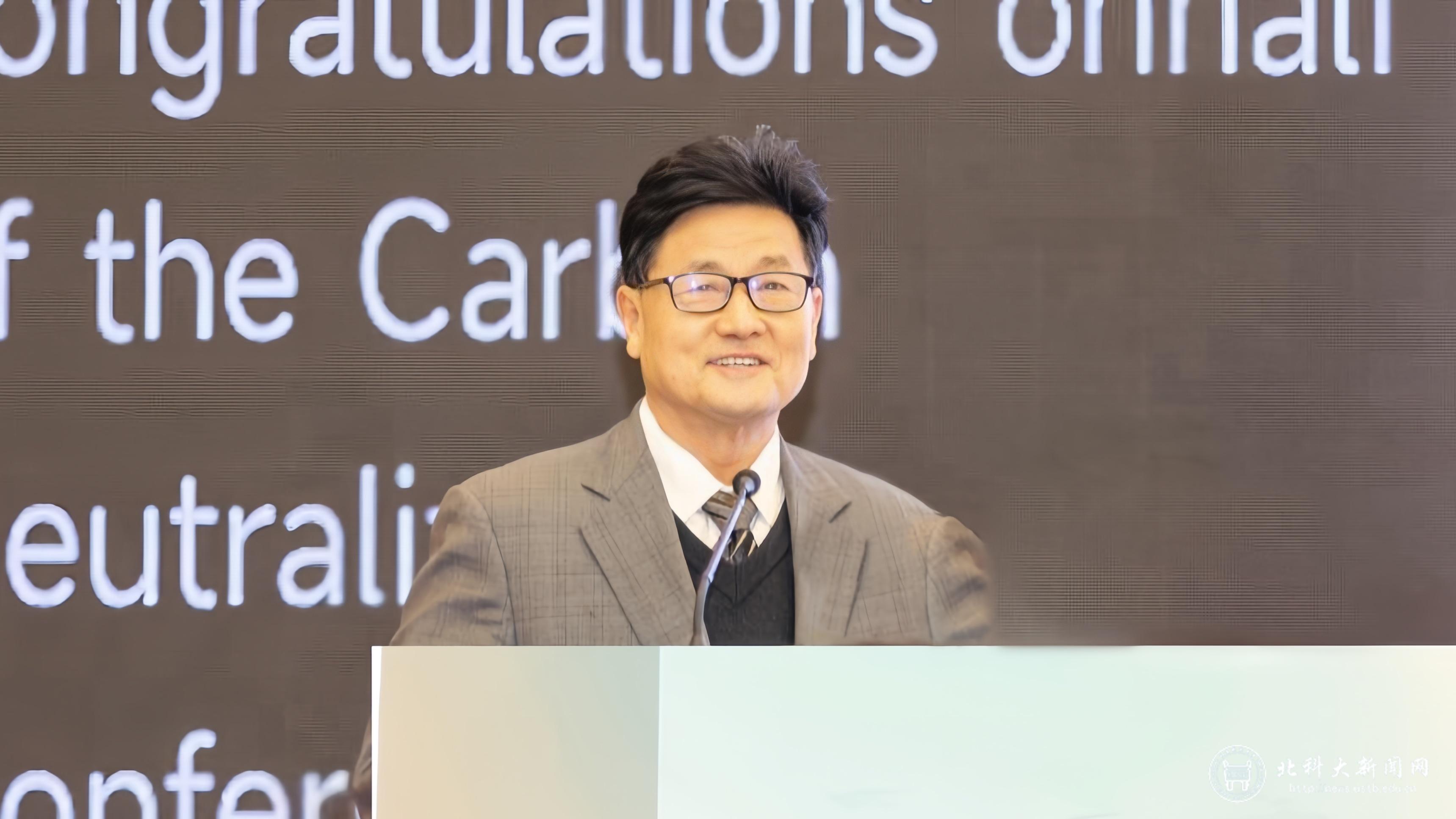 中国金属学会名誉理事长、中国工程院原副院长、中国工程院院士干勇,中国金属学会碳中和分会主任委员、中国工程院院士、北京科技大学碳中和研究院院长、此次大会主席毛新平,中国钢铁工业协会党委副书记、副会长兼秘书长姜维,中国金属学会原常务副理事长、顾问赵沛,学校党委副书记孙景宏出席会议并致辞。