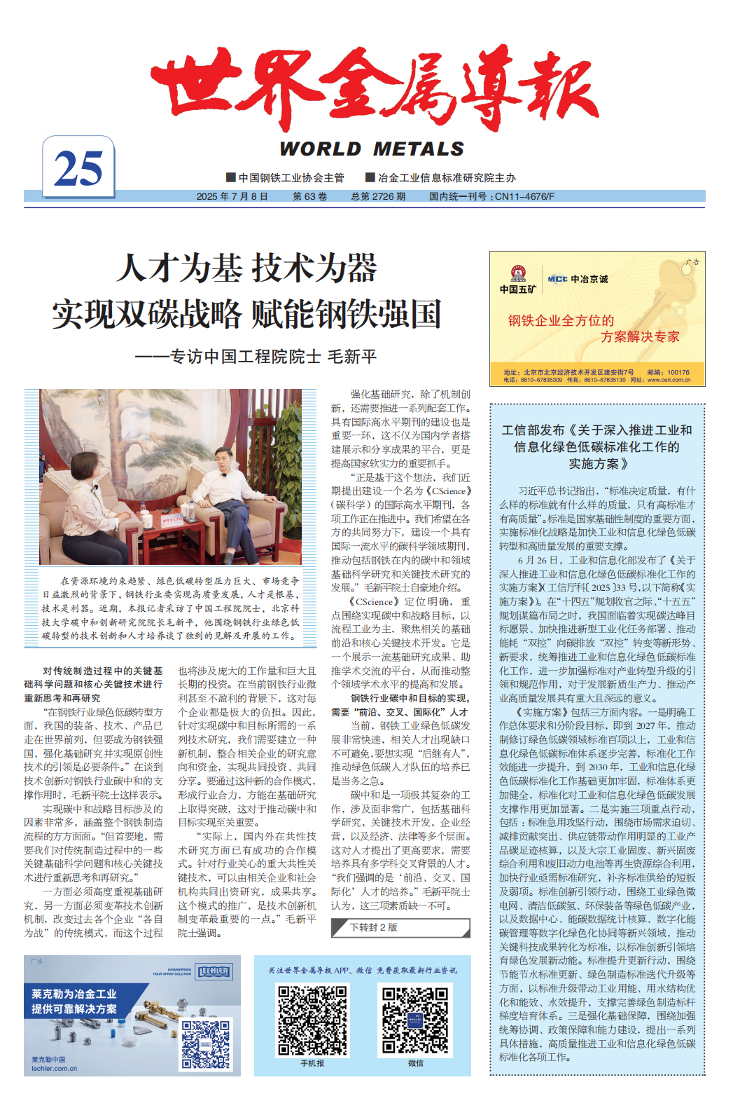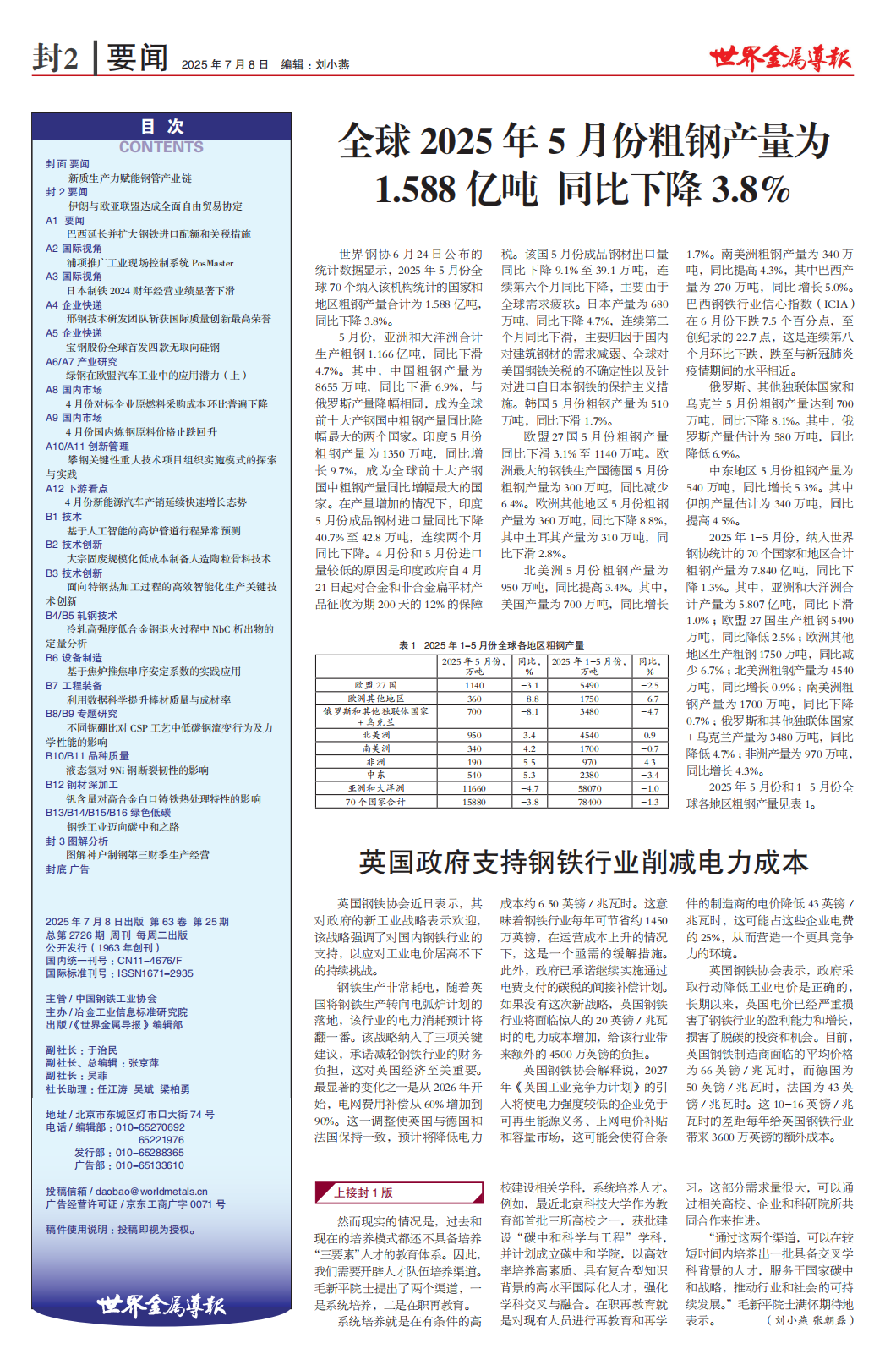 《世界金属导报》2025年第25期 封1、封2