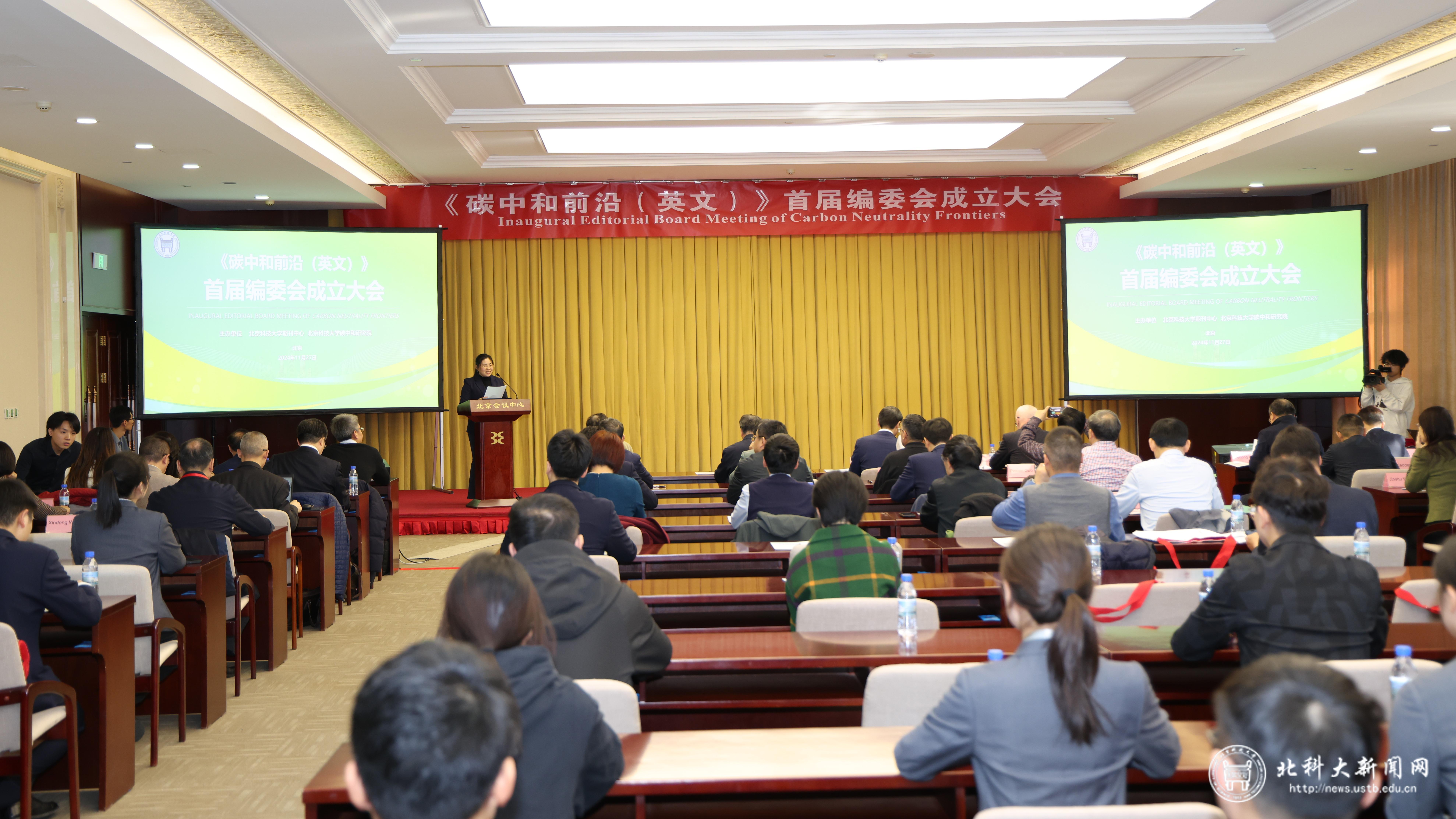 11月27日,学校《碳中和前沿(英文)》(Carbon Neutrality Frontiers)首届编委会成立大会”在北京召开。会议由学校期刊中心和碳中和研究院主办。会议旨在庆祝《碳中和前沿(英文)》首届编委会的成立,充分发挥编委会的作用,以刊为媒,推动以钢铁工业为代表的流程工业在碳中和目标下的技术创新与可持续发展,开创绿色与智能相融合的未来。