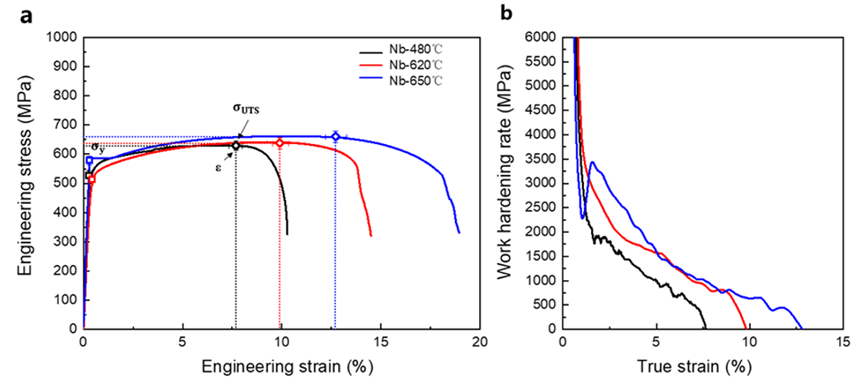 Nb-650钢的力学性能及其与其他卷取温度样品的对比