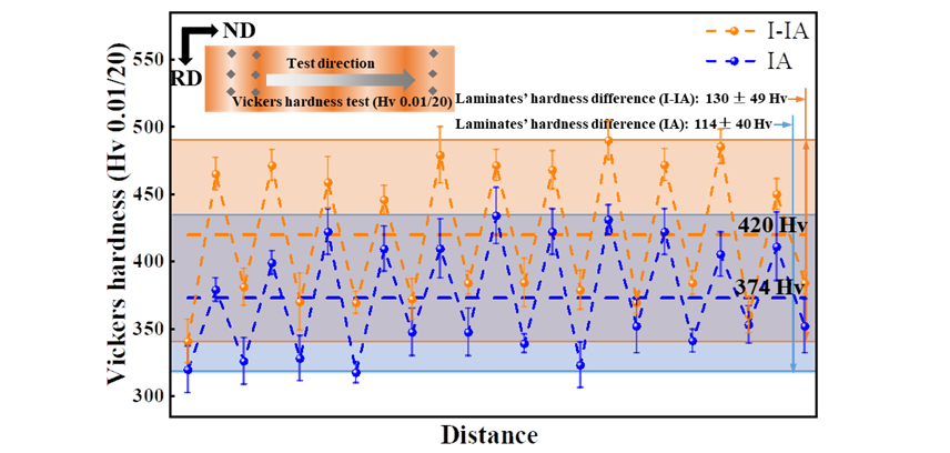 本研究表明锰的不均匀分布是形成层状非均质结构的主要原因,通过合理的工艺组织调控可以在实验钢显微组织中得到良好的强塑性匹配并实现优异的力学性能。研究还发现非均质层之间更大的显微硬度差异和更清晰的界面有利于增强实验钢的异构强化能力(HDI)。这些发现不仅增进了对锰不均匀分布影响组织演变的理解,也为设计新型高性能合金材料提供了思路。
