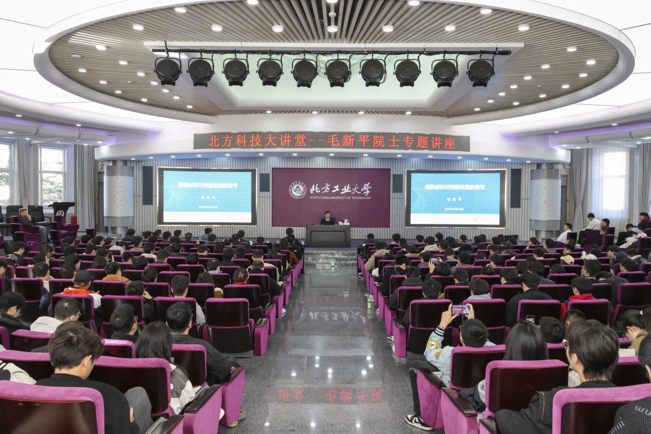 近日,我院毛新平院士受邀参加北方工业大学主办的“北方科技大讲堂”,作题为《钢铁材料可持续发展的思考》主题报告。北方工业大学机械与材料工程学院及相关学院的300余名师生参加。